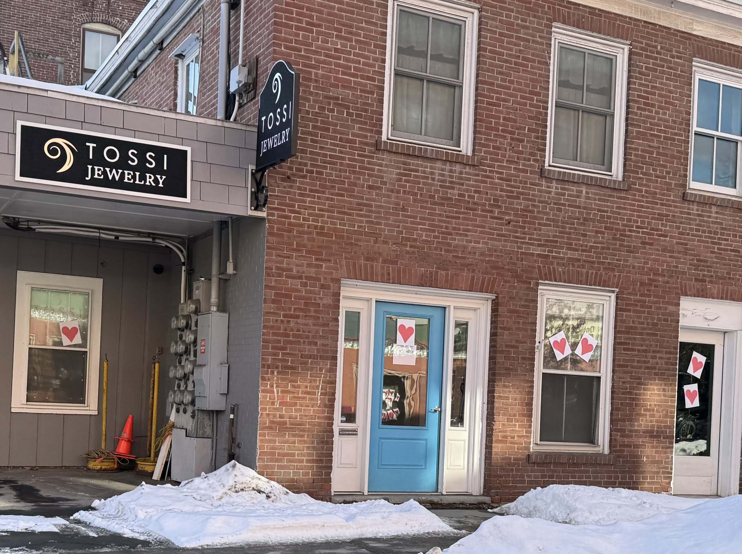Located at 5 East State Street, it is the blue door next to Tossi Jewelry.